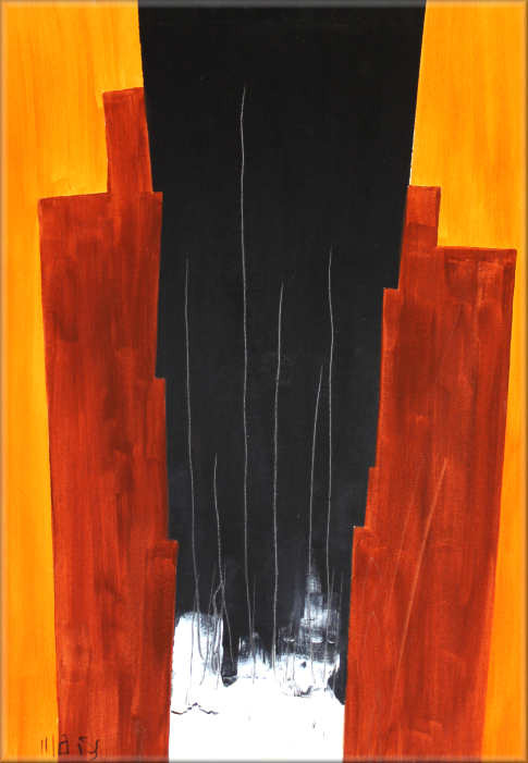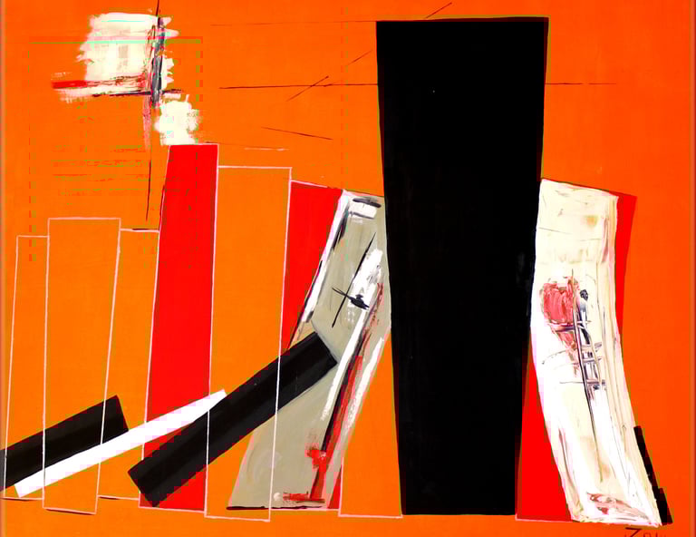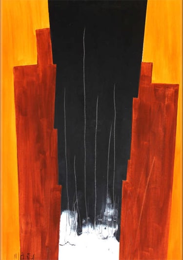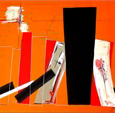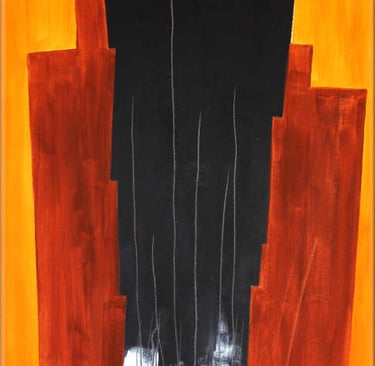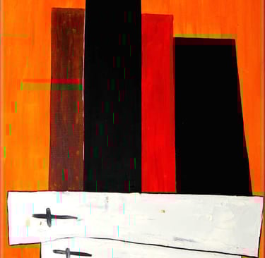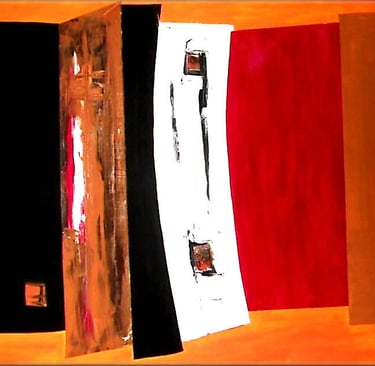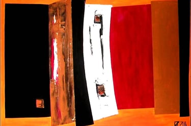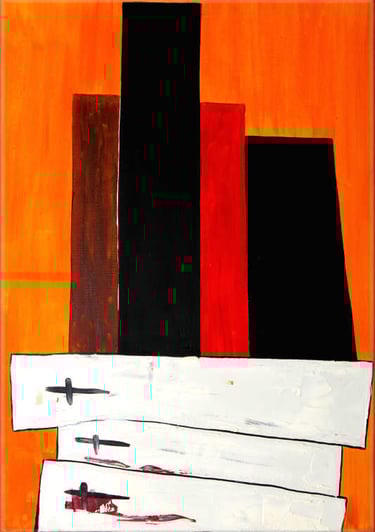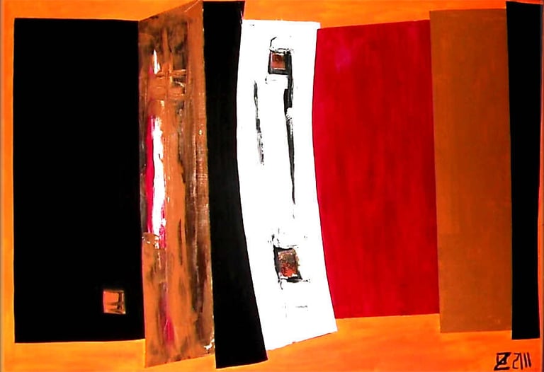 “Rebellion” visualizes the disruption of rigid structures. Vertical color fields stand side by side like facades or walls—tight, closed, seemingly immovable. Yet one narrow panel tilts forward, breaking the alignment and resisting the imposed order. The work speaks of silent defiance, subtle shifts, and the questioning of roles and systems without stating who rebels against whom